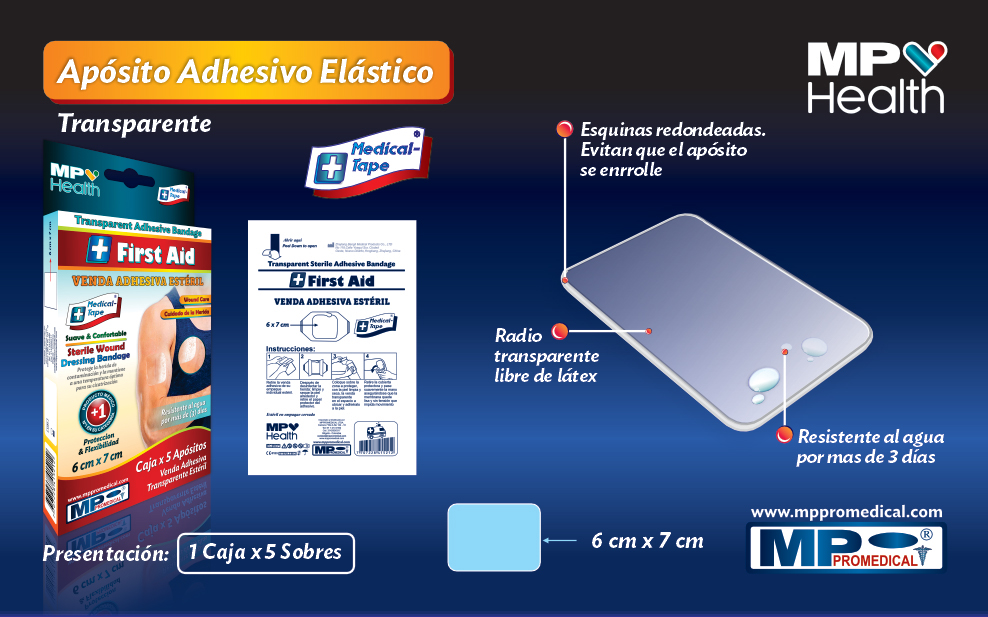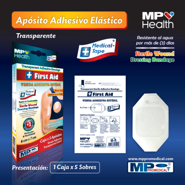 Apósito adhesivo estéril transparente hipoalergénico a prueba de agua.