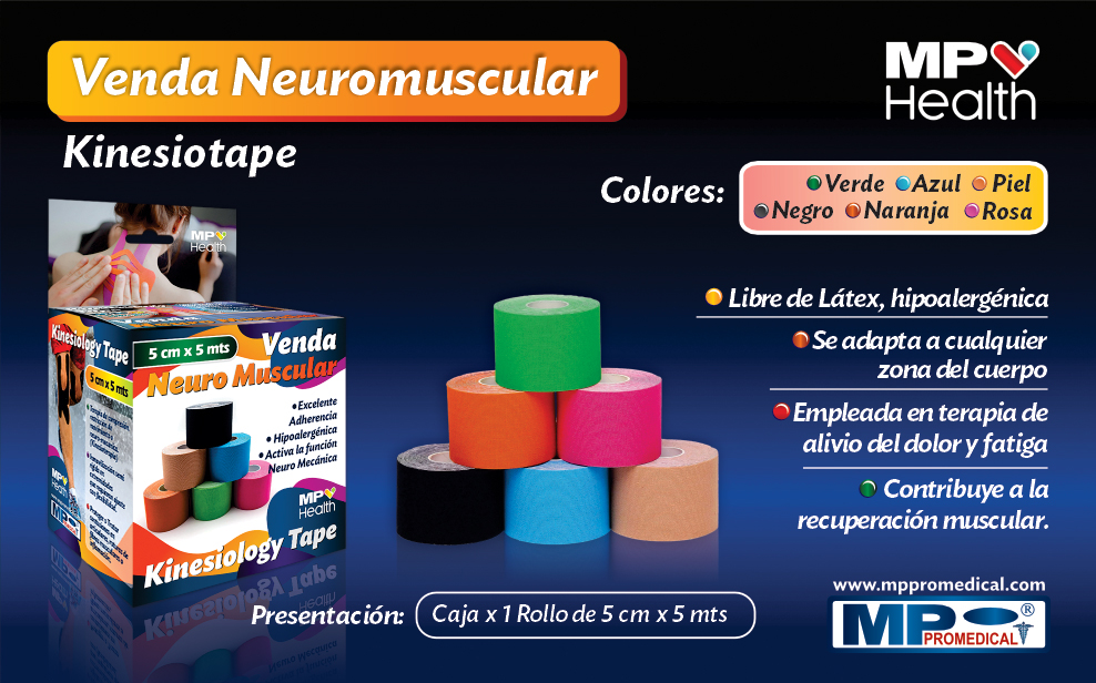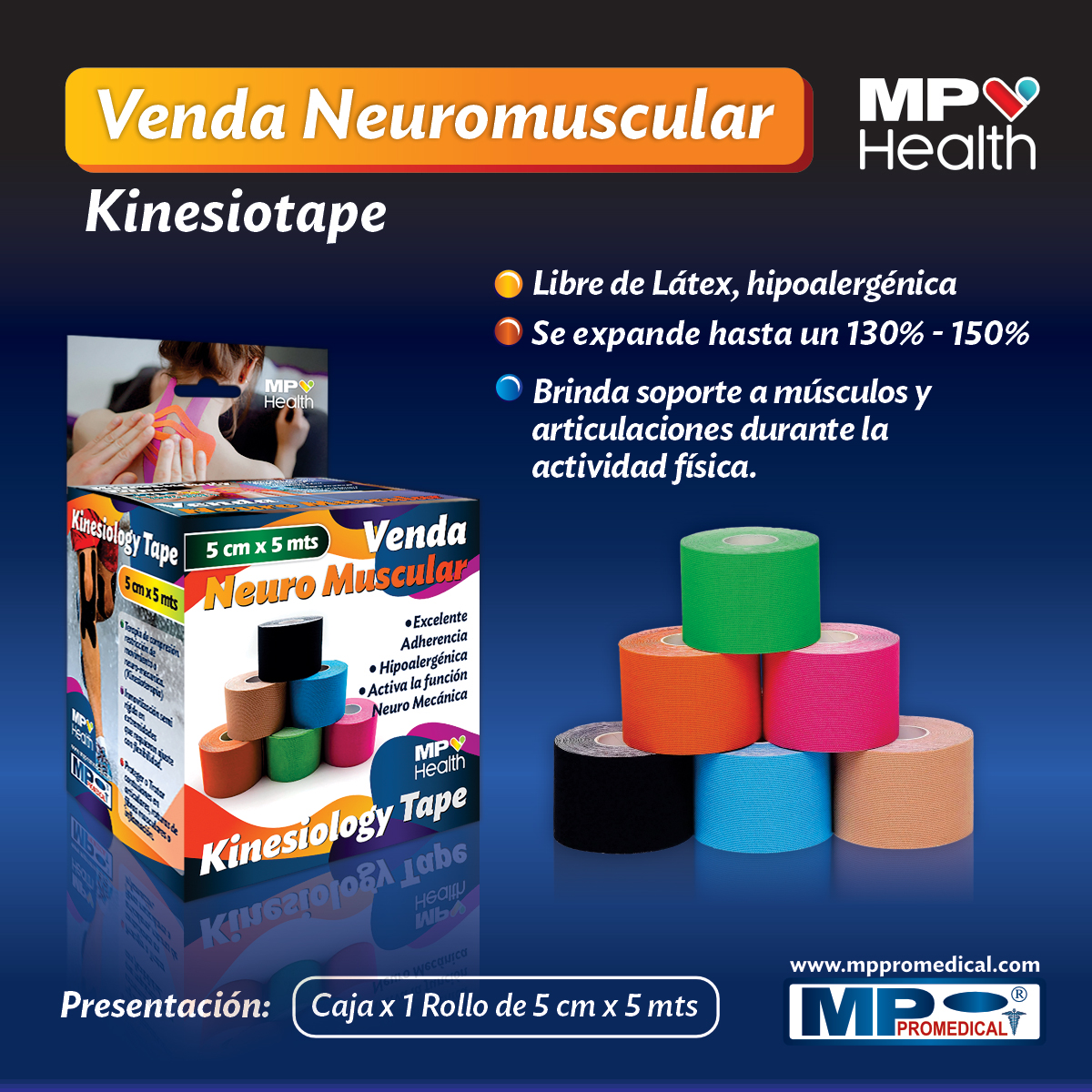 Venda elástica adhesiva que brinda soporte a músculos y articulaciones sin limitar el movimiento.